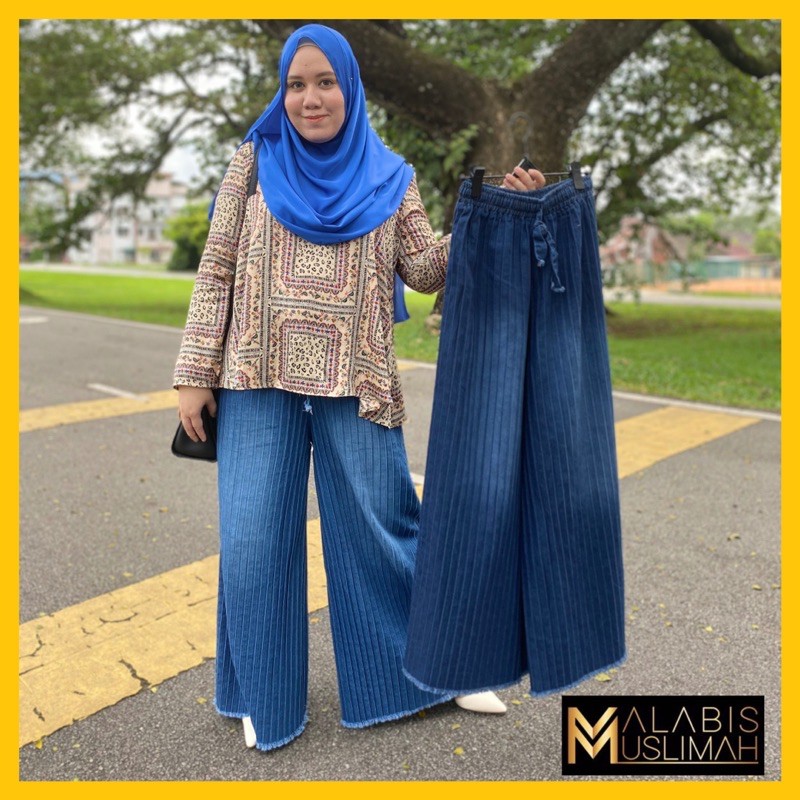 Seluar Jeans Muslimah Matilda Palazo Denim Plus Saiz Selesa Exclusive Pocket Long Palazo Palzo Muslimah Shopee Malaysia